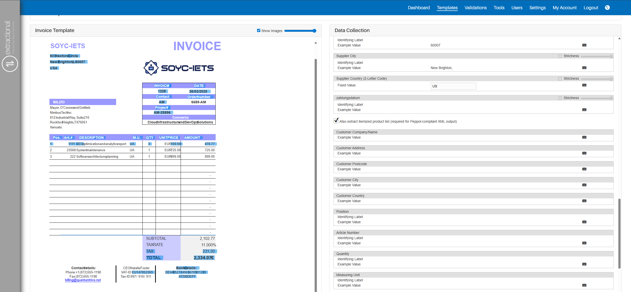 Before you start having Peppol-compliant validations, you will need to create templates that are also Peppol-compliant. This will allow our system to automatically extract all the information from each element of each document.