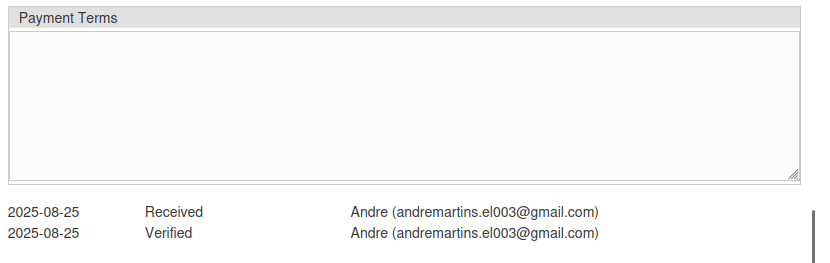 The third additional element is the Payment terms field. In this table you shall enter any specific payment terms that the respective customer has requested.