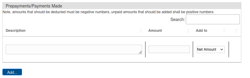 In order to add a new payment, it is as simple to add a new line into the table and save the values at the bottom of the validation's page.