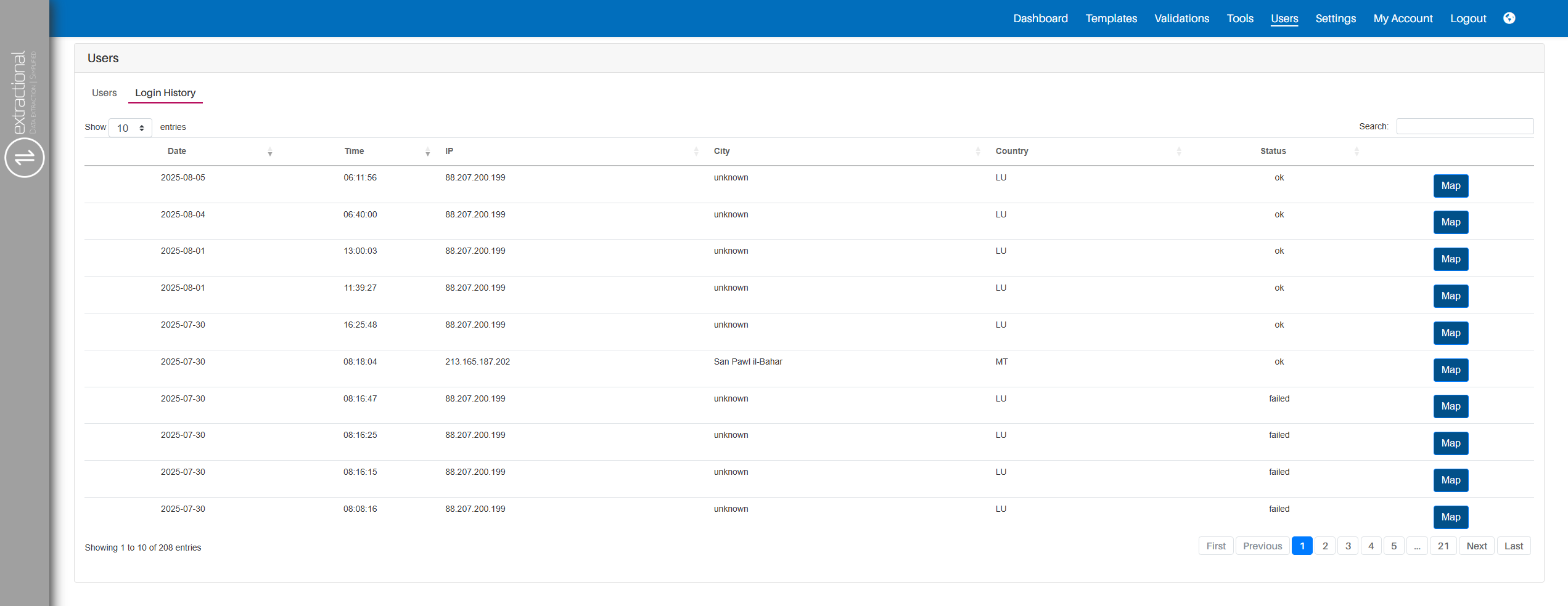 To strengthen access control, we have implemented several measures in the system.\ The first is the use of role-based access control, which has already been explained in detail in a previous section.\ The second is comprehensive login tracking. The system logs every login attempt along with the IP address of the person attempting to access the platform. This allows you to determine the origin of each access attempt. Additionally, the system records whether each login attempt was successful or not.