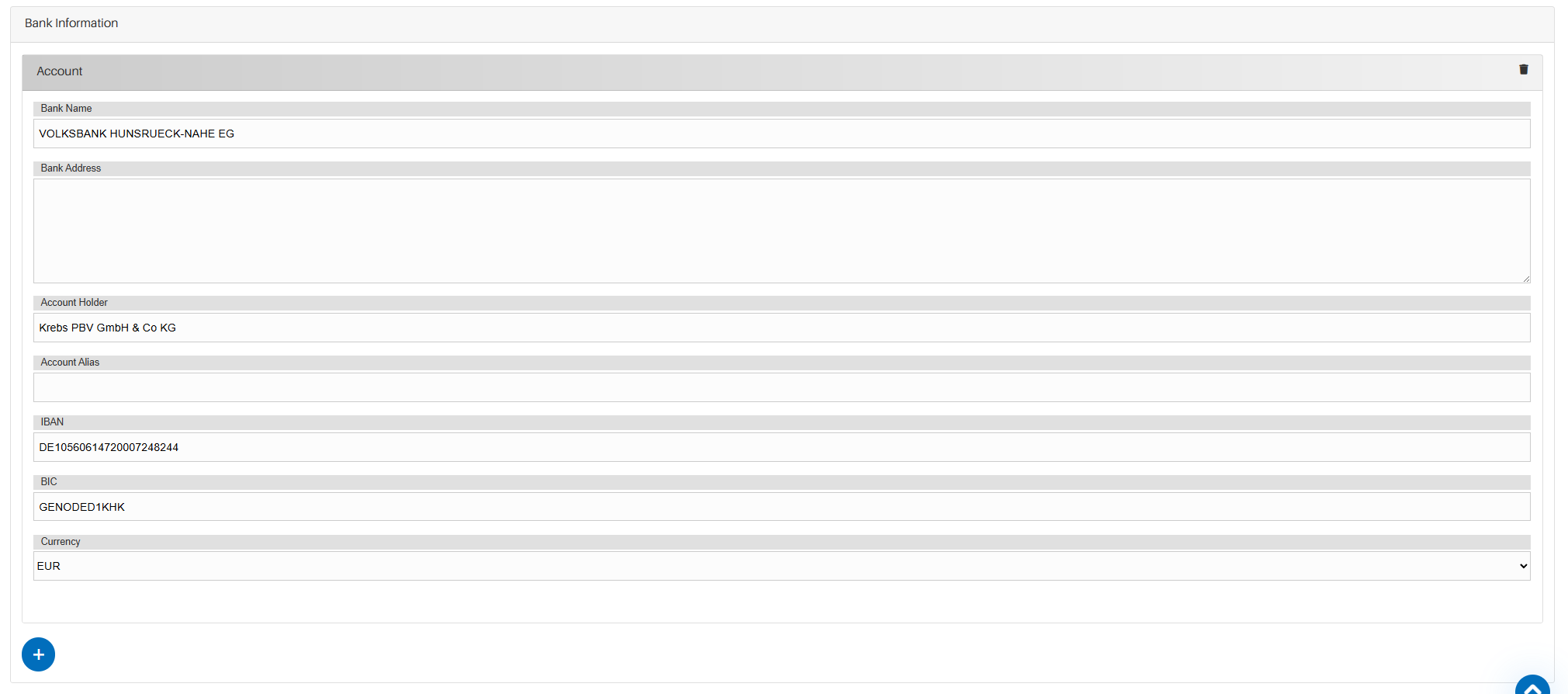 If you would to modify one of your company account(s) or add/remove one, you shall do it in the Bank information tile that is shown at the bottom of the page.