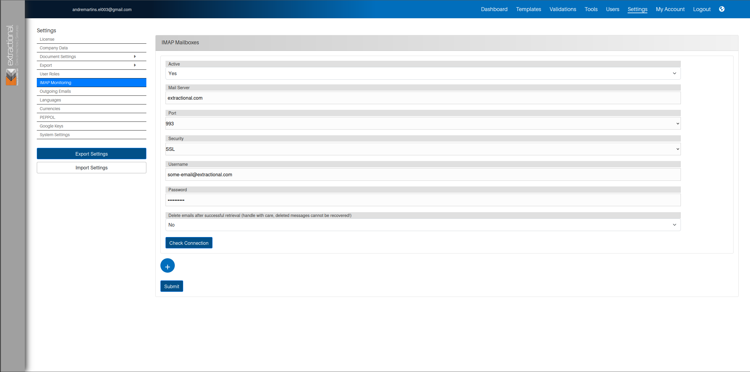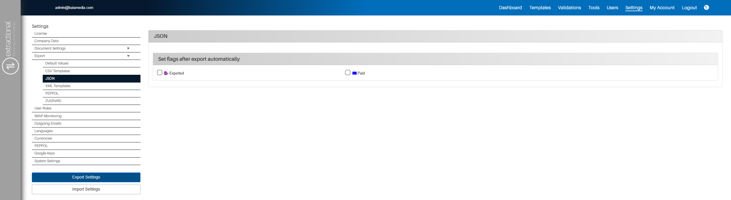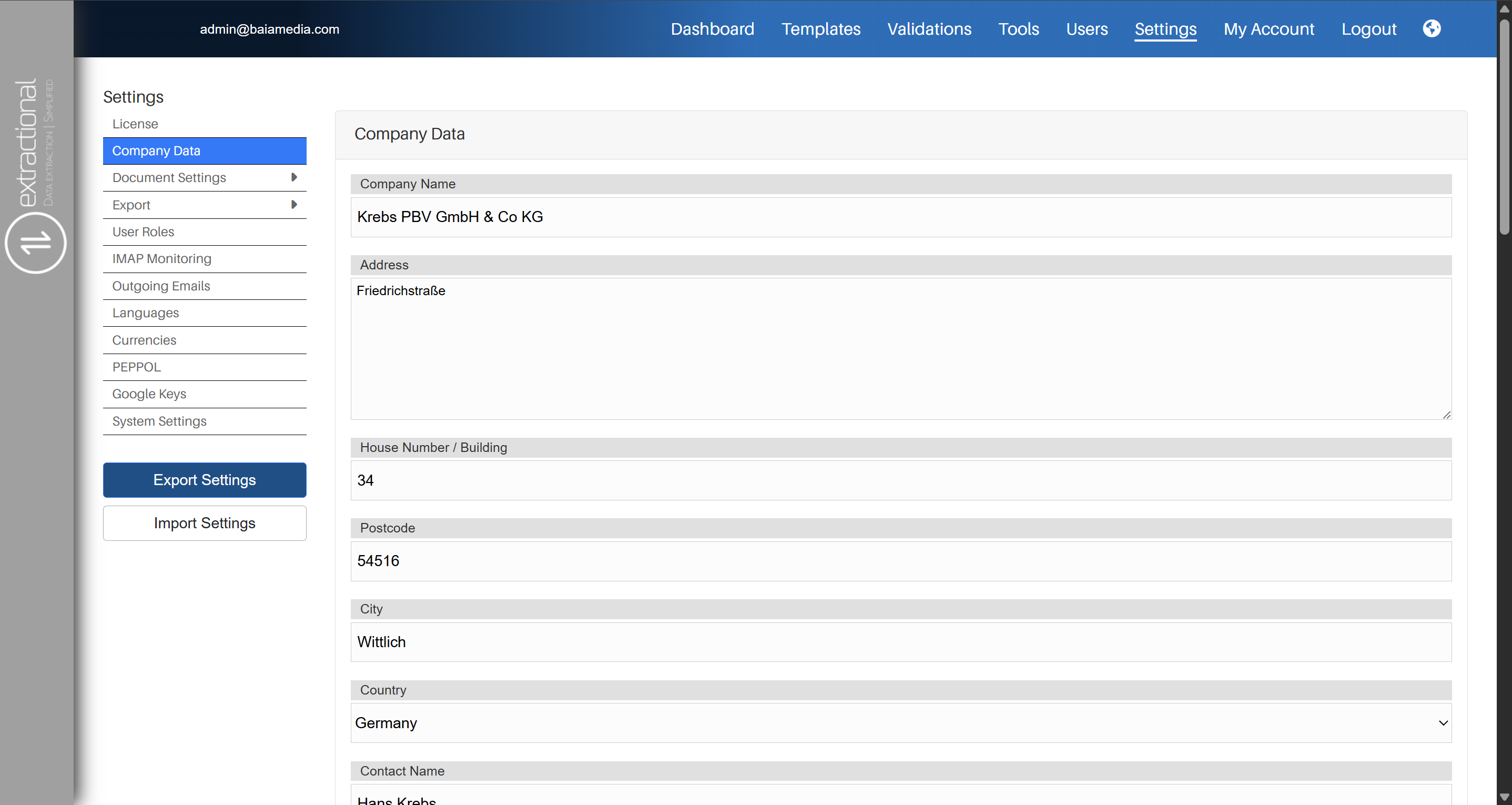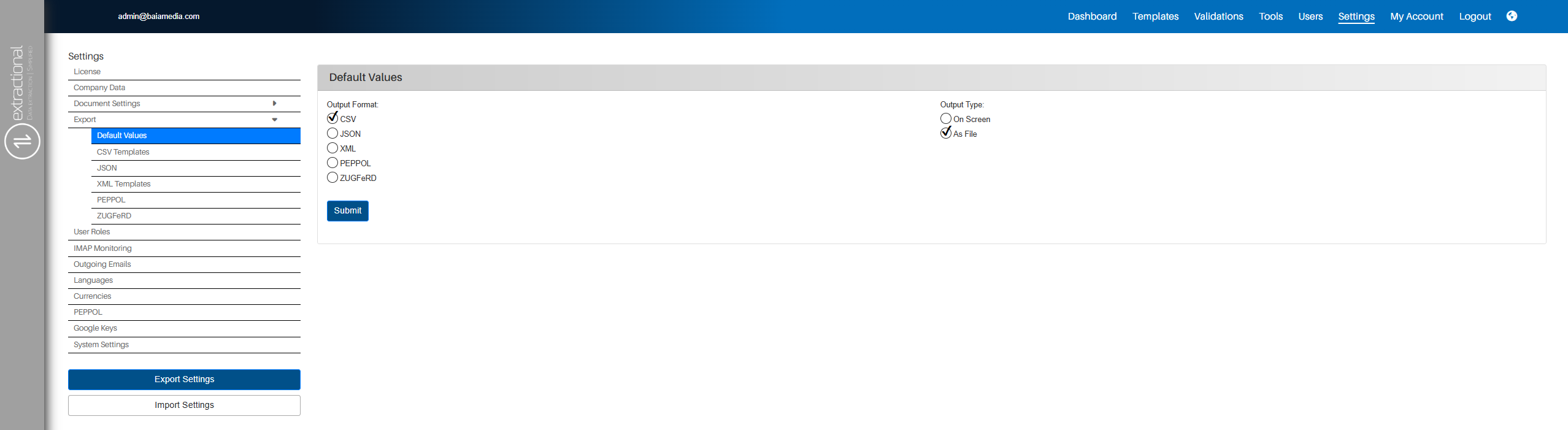 In this subpage of Settings, you can define all the data that shall be extracted from each type of document that is being read.
