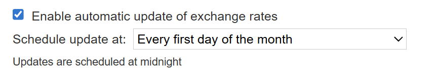 You will then be able to define the frequency of the updates. All the updates are always realized at midnight.
