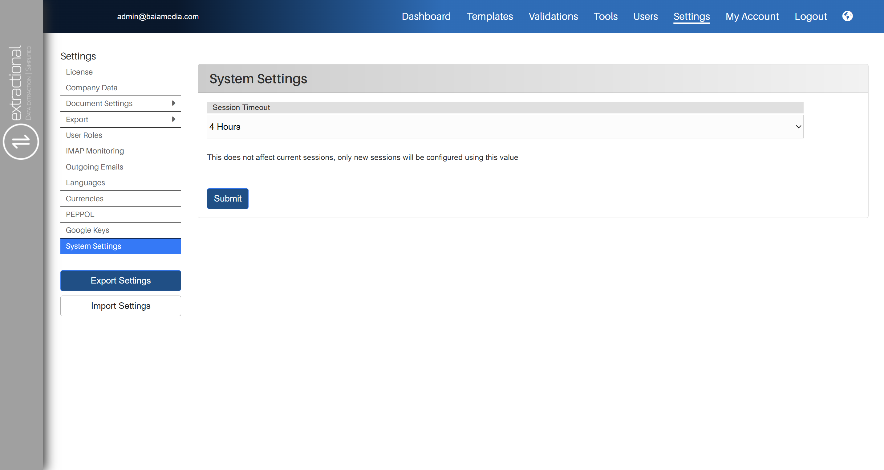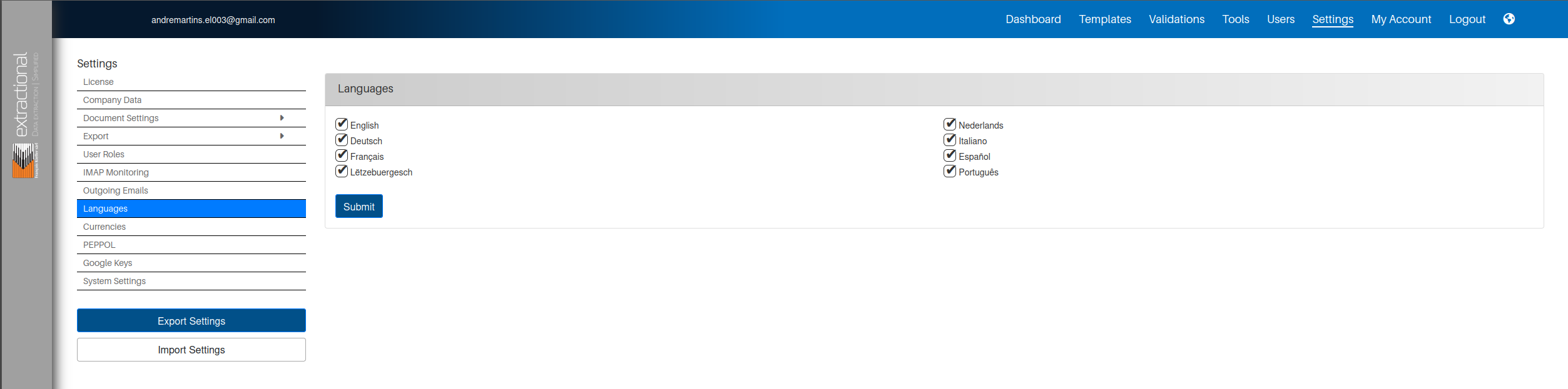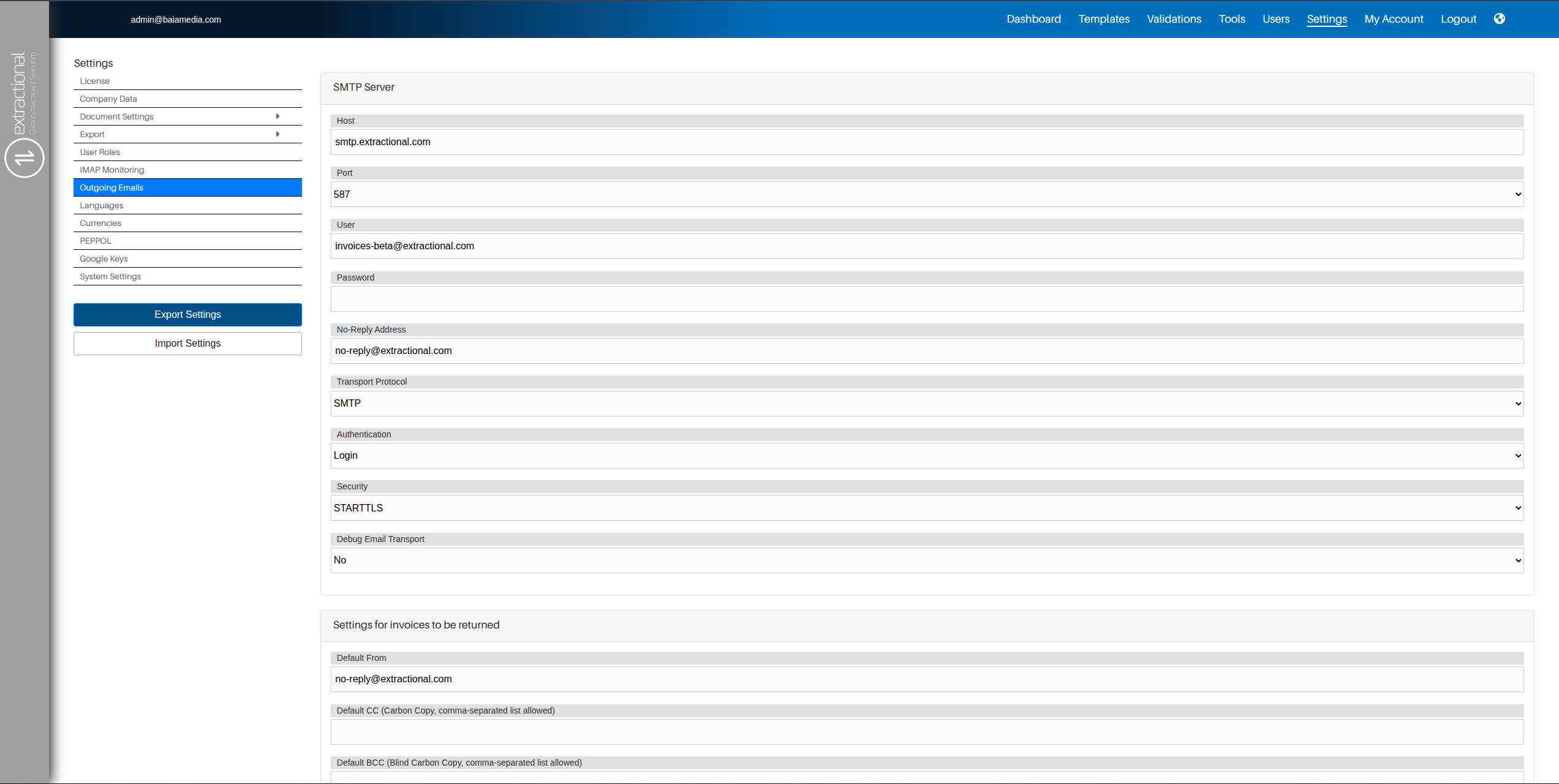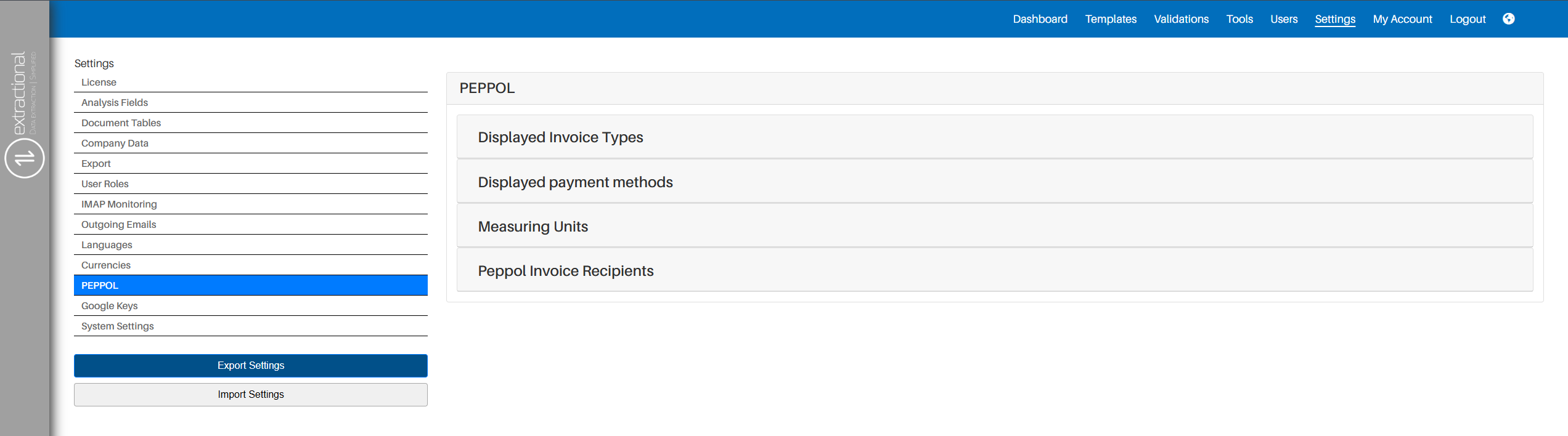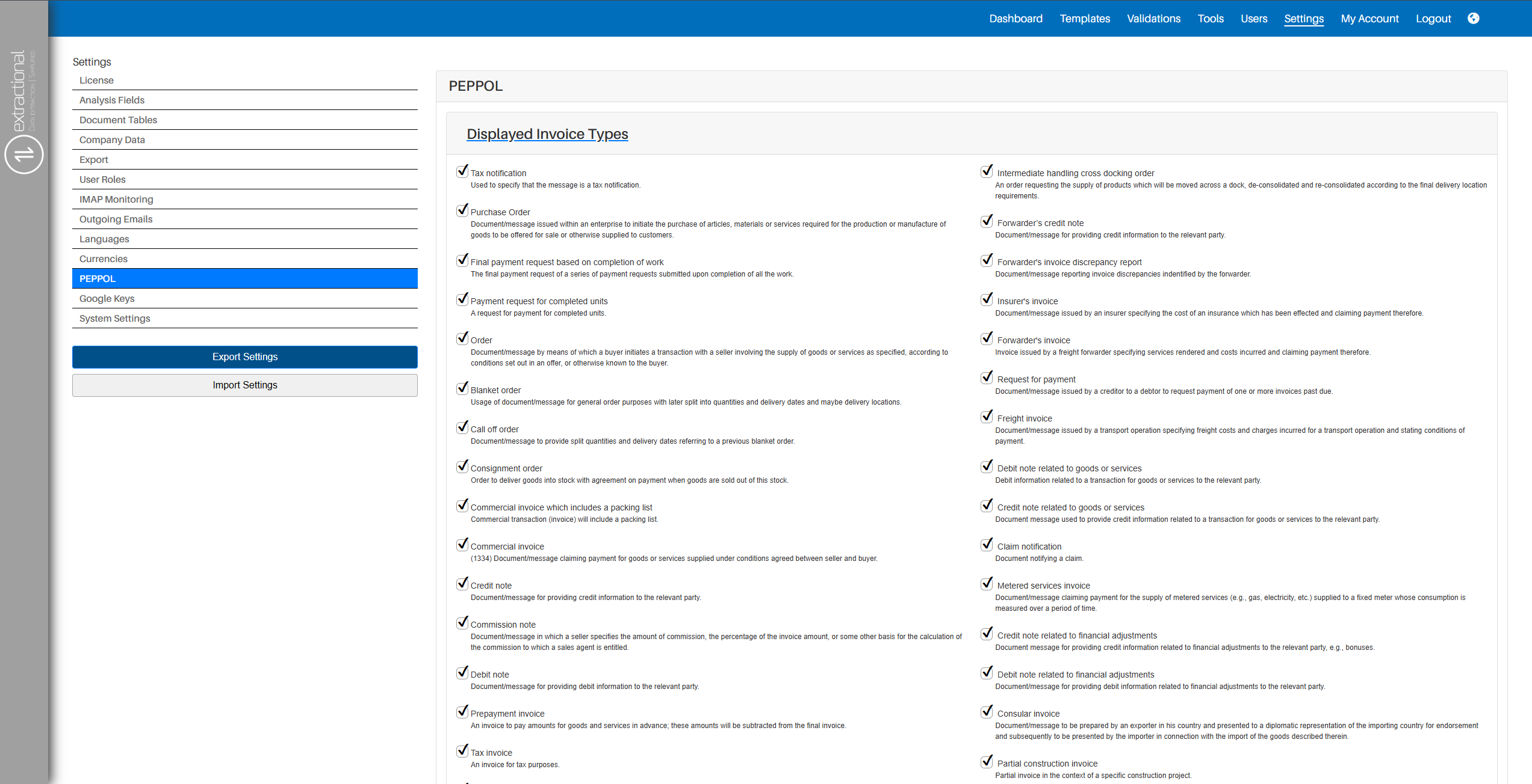 In this subpage of the Settings page, you shall find all the PEPPOL specific settings.
