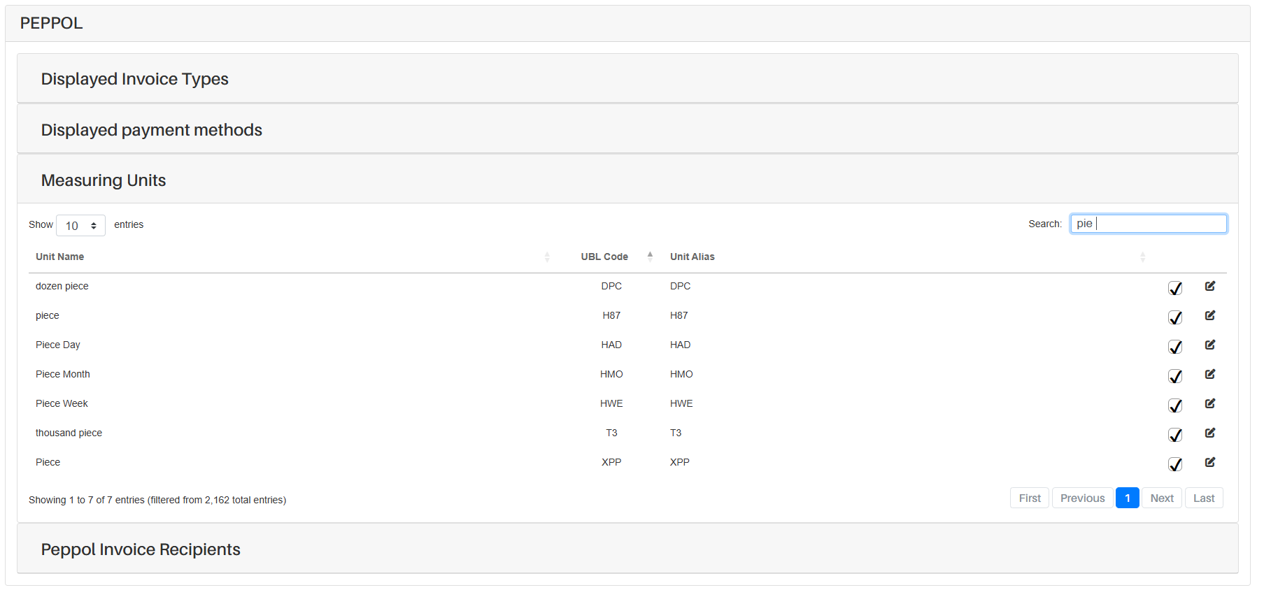 Since Peppol has a large library of all the different measuring units possible, we have changed the navigation method to the one that you will find below.