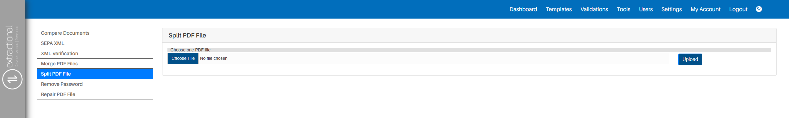 Splitting pdf's tool