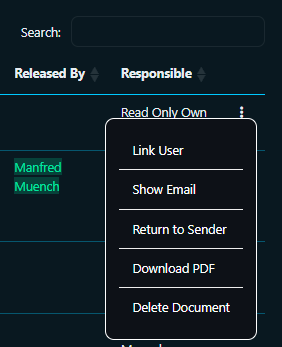 Our system also provides you with the possibility to easily execute operation to a single document. This can be done by clicking on the option icon in the respective validation (visualized with a three points at the right corner of the validation row) and select the desired action that you would like to do.