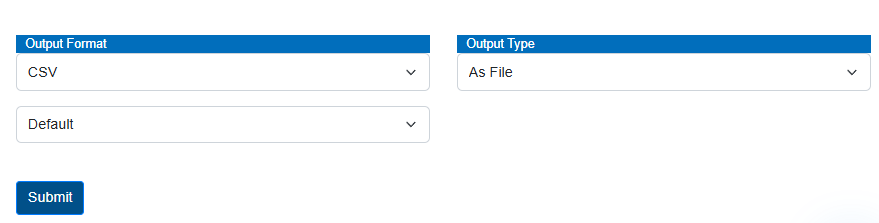 In this section of the page, you will be able to define the export format that you would like to perform and click on the submit button.