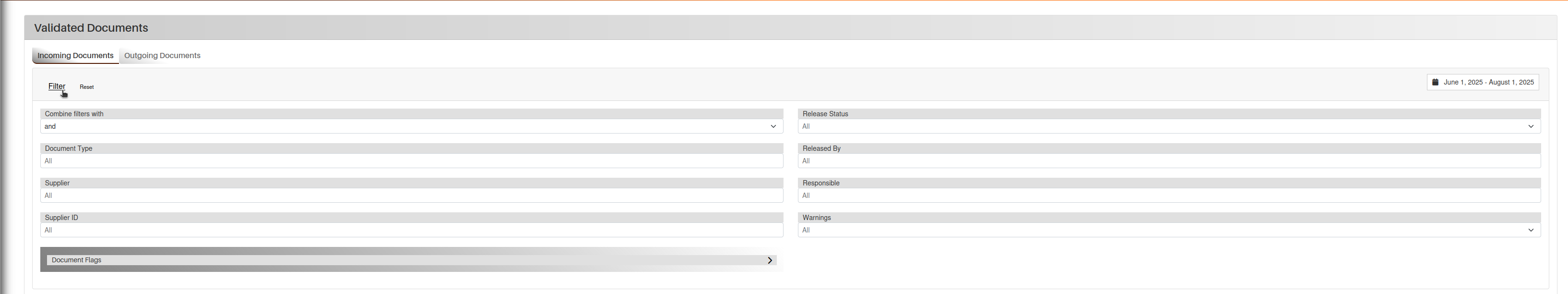 Filtering can be helpful when trying to search for a specific document in your system or want to only treat a subgroup of all validations in your system.